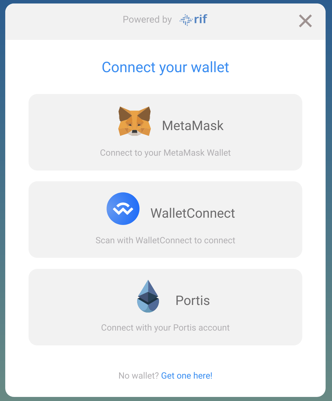 Alternatively, you can do this automatically, by visiting identity.rifos.org, and when you attempt to connect using MetaMask, you will get presented with the following: