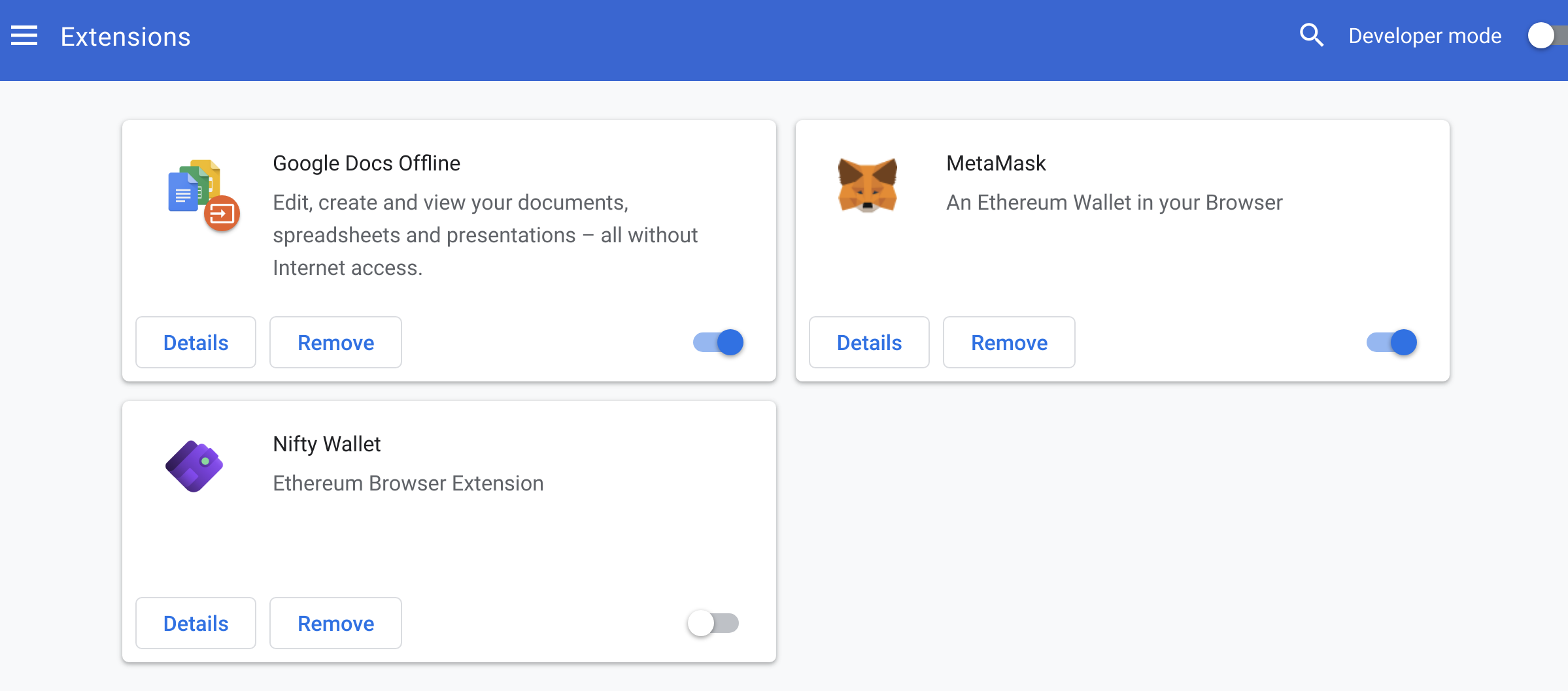 Enable only one Web3 browser extension