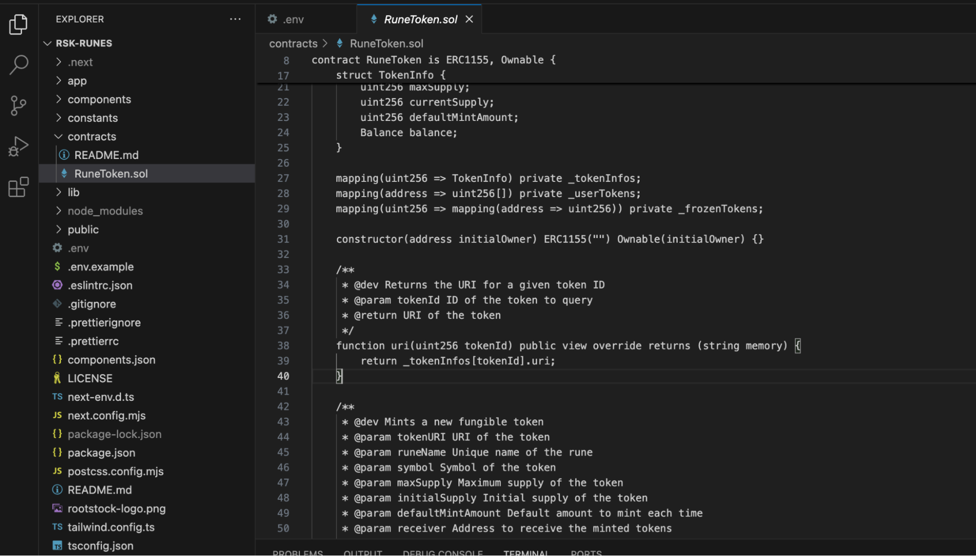 1. Locate the RuneToken.sol file from the RSK-RUNES repository under the contracts folder