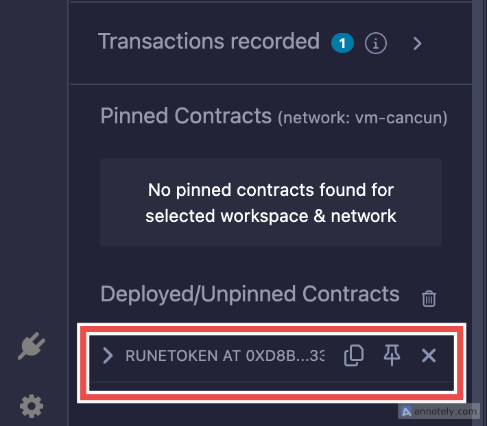 1. Alternatively, you can also copy the contract address from the Transaction Receipt that appears after deployment.